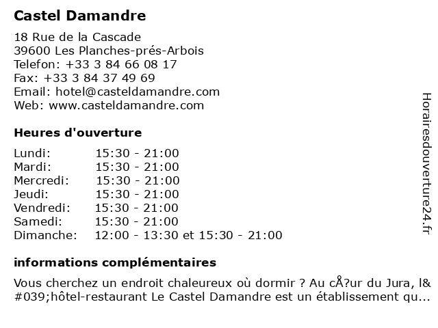 1 Castel Damandre (Distance: 0,46 km) Le Moulin, 39600 Les Planches Pres Arbois castel, damandre, mathieu, restaurant, restaurants |