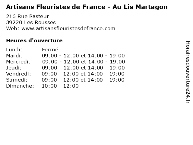 | Samedi | 09:00-12:00 et 14:00-19:00 |