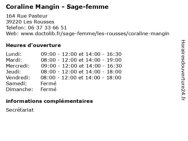 | Mardi | 08:00-12:00 et 14:00-19:00 |