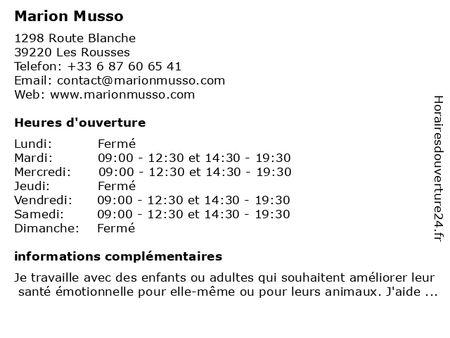 | Samedi | 09:00-12:30 et 14:30-19:30 |