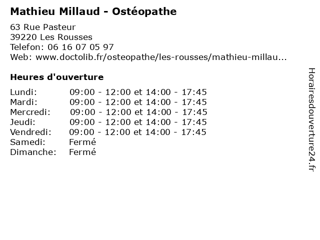 | Mardi | 09:00-12:00 et 14:00-17:45 |