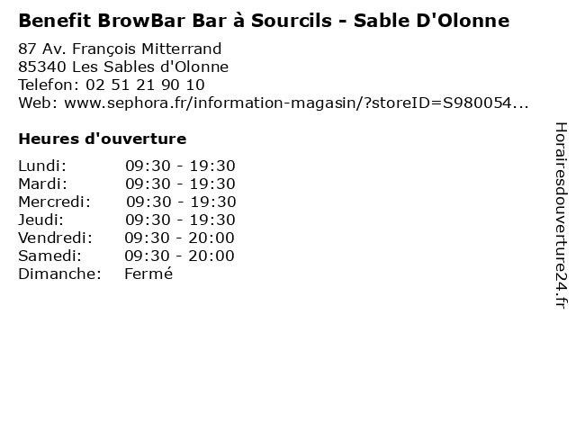 Termes de recherche pour Benefit BrowBar Bar à Sourcils - Sable D'Olonne:bar, d'olonne, sable, salon de beauté, benefit, sourcils, magasin de produits cosmétiques, browbar |
