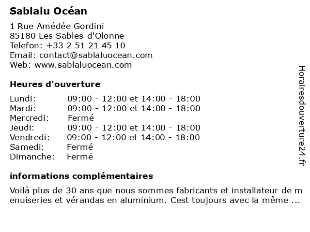 | Lundi | 09:00-12:00 et 14:00-18:00 |