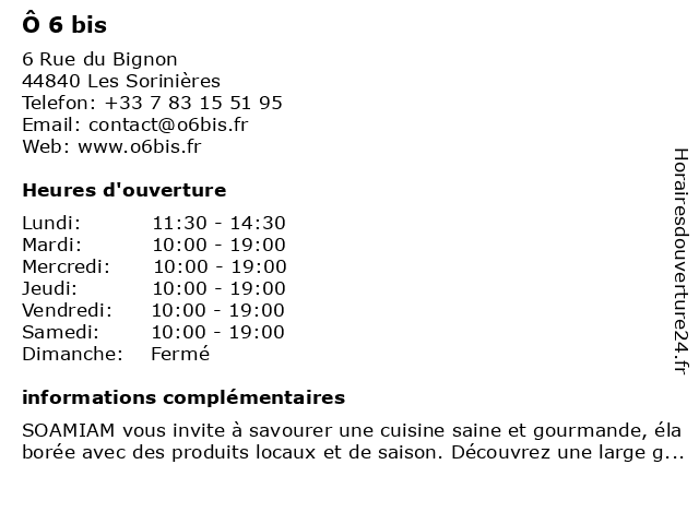 | Dimanche | Fermé |
