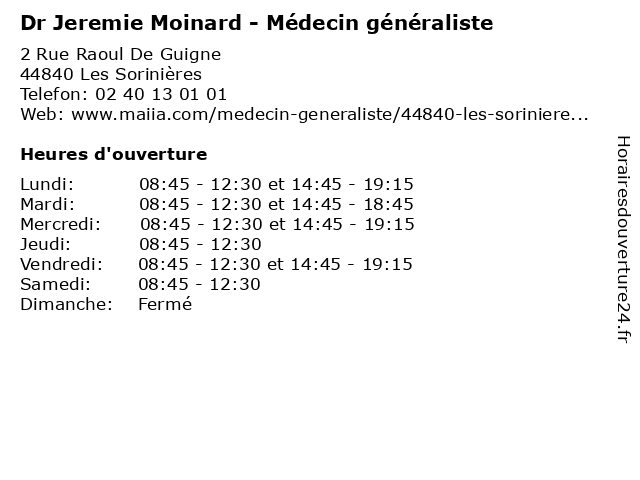 | Lundi | 08:45-12:30 et 14:45-19:15 |