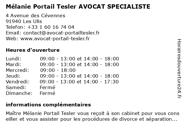 Lundi | 09:00-13:00 et 14:00-18:00 |