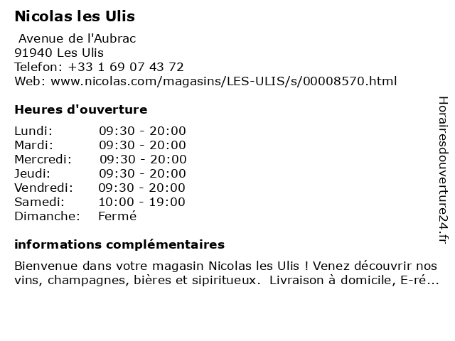 1 Dr Nicolas de Saint-Aubert - Chirurgien urologue - secrétariat (Distance: 1,46 km) 29 Résidence le Bois du Roi, 91940 Les Ulis aubert, chirurgien, chirurgien urologue, de, dr, médecins, médicaments, nicolas, saint, santé, secrétariat, spécialiste, urologue 2 Nicolas Valier SARL (Distance: 1,85 km) 162 Route de Chartres, 91440 Bures-sur-Yvette nicolas, sarl, valier 3 Noblecourt Nicolas (Distance: 4,30 km) 1 Place Du Marche Neuf, 91190 Gif Sur Yvette nicolas, noblecourt, restaurants 4 Nicolas (Distance: 4,33 km) - Villebon 2, 91140 Villebon-sur-Yvette champagnes, hyper-supermarchés, nectars, nicolas, vente au détail de vin, vin 5 Nicolas (Distance: 5,31 km) . Avenue De La Plesse, 91140 Villebon Sur Yvette cafe, chaussures, enfants, homme, mode femme, nicolas, restaurant, sport 6 Nicolas (Distance: 6,53 km) 2 Avenue de la Plesse, 91140 Villebon-sur-Yvette beaute, chaussures, decoration, mode enfants, mode femme, mode homme, nicolas, restauration, service, sport, telephonie |