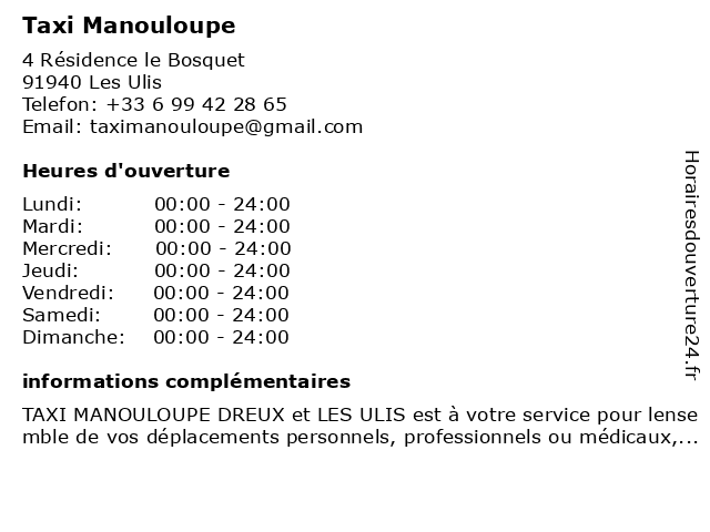 | Samedi | 00:00-24:00 |