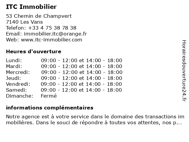 1 ITC Immobilier Agence Fnaim (Distance: 17,01 km) 17 Boulevard du Portalet, 30500 Saint-Ambroix agence, fnaim, immobilier, itc 2 Provans Immobilier (Distance: 0,47 km) 17 Place Henri Thibon, 07140 Les Vans agence, gestion, immobilier, location, provans, transaction 3 Cap Soleil Immobilier (Distance: 4,78 km) - Hameau La Ribeyre, 07140 Les Assions agence, cap, gestion, immobilier, location, soleil, transaction 4 IRS IMMOBILIER Ardèche (Distance: 19,46 km) 5 Place Paul Mercier, 07110 Largentière ardèche, immobilier, irs 5 Renaissance Immobilier (Distance: 20,10 km) 15 Avenue Chaillot, 30430 Barjac agence, gestion, immobilier, location, renaissance, transaction, vente 6 |