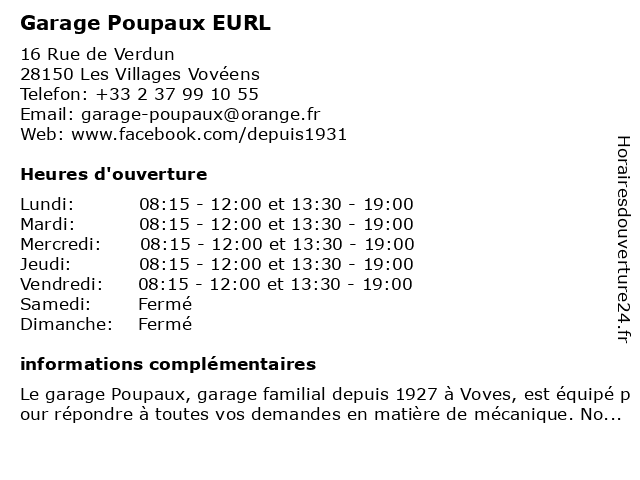 | Lundi | 08:15-12:00 et 13:30-19:00 |