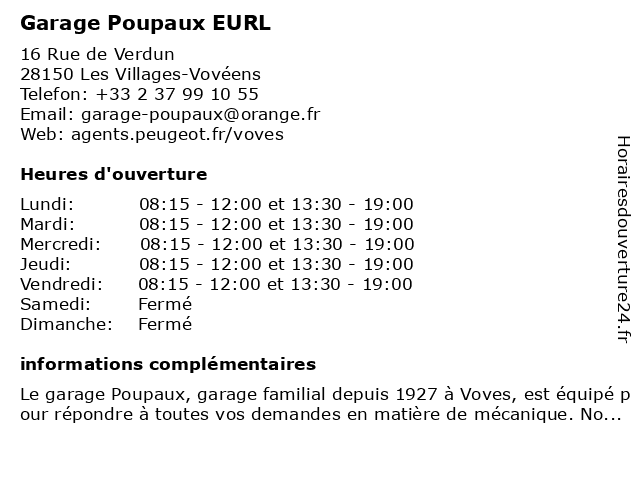 Lundi | 08:15-12:00 et 13:30-19:00 |
