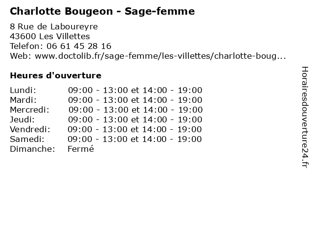 Lundi | 09:00-13:00 et 14:00-19:00 |