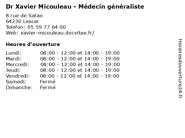 | Lundi | 08:00-12:00 et 14:00-19:00 |