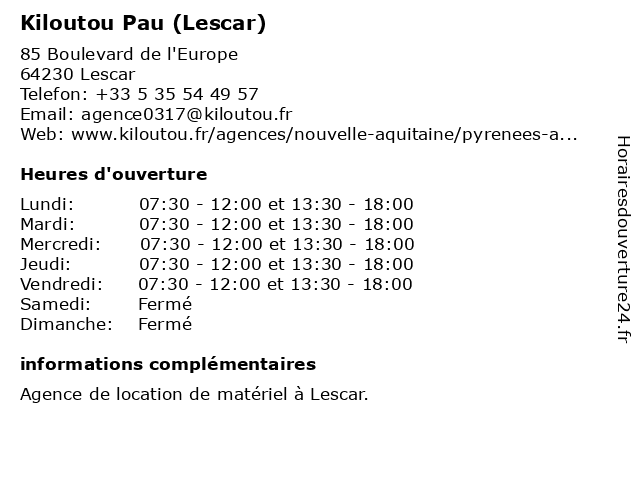 | Lundi | 07:30-12:00 et 13:30-18:00 |