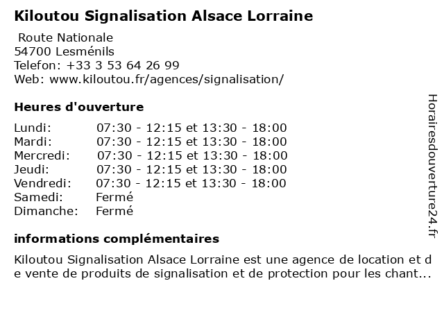 | Lundi | 07:30-12:15 et 13:30-18:00 |