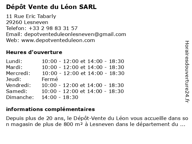 Termes de recherche pour Dépôt Vente du Léon SARL:du, leon, vente, sarl, depot |