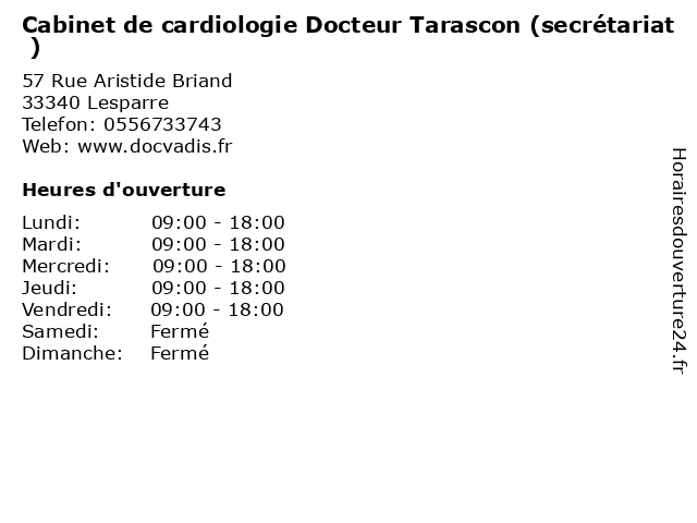 Termes de recherche pour Cabinet de cardiologie Docteur Tarascon (secrétariat ):de, tarascon, cabinet, santé, secretariat, docteur, médecins, consultation, cardiologie |