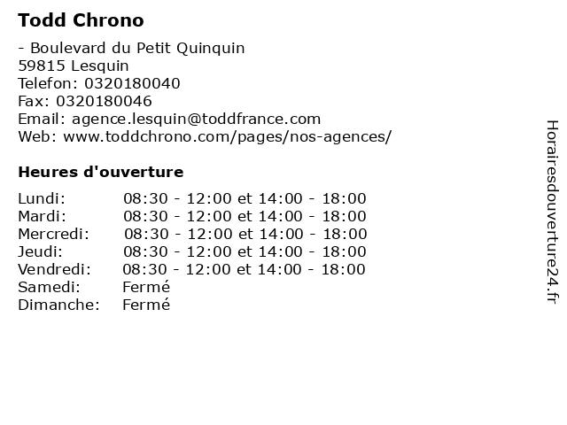 | Lundi | 08:30-12:00 et 14:00-18:00 |