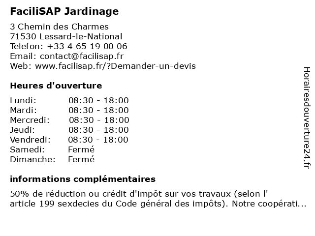 | Lundi | 08:30-18:00 |