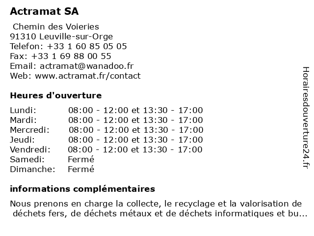 | Mercredi | 08:00-12:00 et 13:30-17:00 |