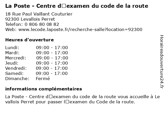 Termes de recherche pour La Poste - Centre d’examen du code de la route:poste, la, du, de, route, centre, code, d’examen, centre d'évaluation scolaire, école technique |