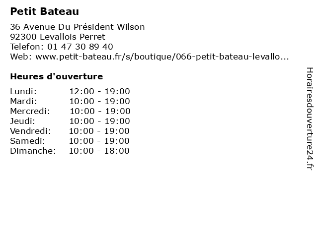 1 Petit Bateau (Distance: 0,00 km) 36 Avenue Du Président Wilson, 92300 Levallois Perret bateau, magasin de t-shirts, magasin de vêtements pour enfants, magasin de vêtements pour femmes, mode, petit 2 Petit Bateau (Distance: 1,34 km) 46 Avenue Des Ternes, 75017 Paris bateau, magasin de t-shirts, magasin de vêtements pour enfants, magasin de vêtements pour femmes, mode, petit 3 Petit Bateau (Distance: 3,06 km) 13 Rue d'Amsterdam, 75008 Paris bateau, cafe, chaussures, enfants, homme, mode femme, petit, restaurant, service, sport 4 Petit Bateau (Distance: 3,91 km) 15 Parvis de la Défense, 92092 Paris La Défense bateau, chaussures, lingerie, mode enfant, mode femmes, mode hemmes, petit, sport 5 Petit Bateau (Distance: 4,08 km) 9 rue du 29 Juillet, 75001 Paris bateau, children's clothing, men's clothing, petit, women's clothing 6 Petit Bateau (Distance: 5,17 km) 53 bis rue de Sèvres, 75006 Paris bateau, children's clothing, men's clothing, petit, women's clothing |