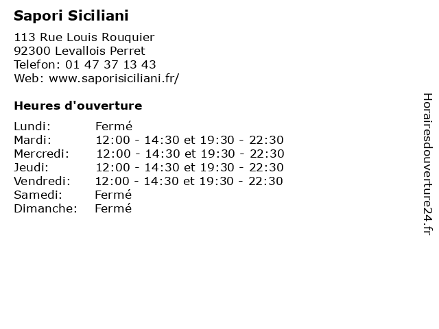 1 Sapori Pizzeria (Distance: 0,79 km) 17 bis rue Voltaire, 92300 Levallois Perret boissons, pizzas, pizzeria, pizzéria, restaurant, sapori 3 Sapori Di Parma (Distance: 4,15 km) 56 Avenue de la Bourdonnais, 75007 Paris di, italien, parma, parme, restaurants, sapori, saveurs, épicerie 4 Sapori di Parma (Distance: 4,64 km) 80 Avenue De Suffren, 75015 Paris di, parma, parme, restaurants, sapori, saveurs 5 Sapori d'Italia (Distance: 5,10 km) 36 bis rue de Verdun, 92150 Suresnes d', d'italia, gastronomique, italia, italien, restaurants, sapori 6 Sapori d'Italia (Distance: 7,72 km) 42bis Rue Friant, 75014 Paris d'italia, italien, pates, pizzas, restaurant, restauration, sapori |