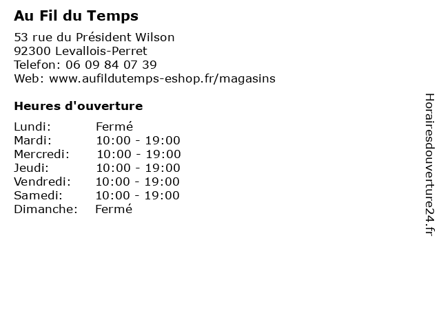 | Mercredi | 10:00-19:00 |