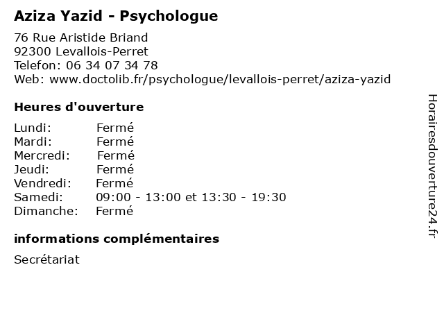 | Samedi | 09:00-13:00 et 13:30-19:30 |