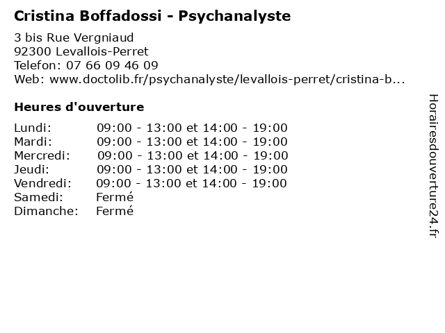 | Lundi | 09:00-13:00 et 14:00-19:00 |