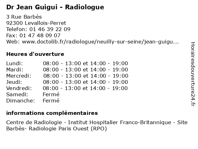 1 Dr Jean Guigui - Radiologue (Distance: 0,51 km) 1 Rue des Dames Augustines, 92200 Neuilly-sur-Seine .secretariat, dr, guigui, jean, médecin, médecine, médical, pharmaceutique, radiologue, secretariat, traitement 2 Dr Jean Guigui - Radiologue (Distance: 4,76 km) 468 Boulevard des Provinces Françaises, 92000 Nanterre consultation, docteur, dr, guigui, jean, med, médecin, médecine, radiologue, secrétariat, traitement 3 Dr Nathalie Giuily-Guigui - Médecin généraliste (Distance: 2,83 km) 100 Boulevard du Général Leclerc, 92118 Clichy consultation, docteur, dr, giuily, guigui, généraliste, med, médecin, médecine, nathalie, traitement 4 Dr. Alain Guigui - Ophtalmologiste (Distance: 7,41 km) 73 Boulevard Richard Lenoir,, 75011 Paris alain, clinic, dr., guigui, medecin, ophtalmologiste 5 Yoann Ben Guigui - Diététicien (Distance: 9,13 km) 10-12 Rue Eugène et Marie-Louise Cornet, 93500 Pantin ben, diététicien, guigui, médecin, médecine, médical, pharmaceutique, traitement, yoann 6 Dr Nathalie Guigui - Cardiologue (Distance: 16,04 km) 92 Avenue du Général de Gaulle, 94000 Créteil 94000, cardiologue, cardiomédical, créteil, dr, guigui, nathalie |