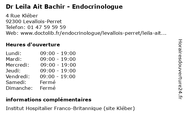 1 Dr Leila Ait Bachir - Endocrinologue (Distance: 0,08 km) 4 Rue Kléber, 92300 Levallois-Perret ait, bachir, dr, endocrinologue, leila, médecins, médicaments, santé, secrétariat, spécialiste 2 Dr Magda Zaarour - Endocrinologue (Distance: 0,01 km) 4 Rue Kléber, 92300 Levallois-Perret dr, endi, endocrinologue, magda, medecin, sante, zaarour 3 Dr Marine Cossec - Endocrinologue (Distance: 0,01 km) 4 Rue Kléber, 92300 Levallois-Perret cossec, dr, endi, endocrinologue, marine, medecin, sante 4 Dr Capucine De Marcellus - Endocrinologue (Distance: 0,50 km) 55 Boulevard du Château, 92200 Neuilly-sur-Seine capucine, consultation, de, docteur, dr, endocrinologue, marcellus, med, médecin, traitement 5 Dr Edouard Ghanassia - Endocrinologue (Distance: 0,50 km) 55 Boulevard du Château, 92200 Neuilly-sur-Seine consultation, docteur, dr, edouard, endocrinologue, ghanassia, med, médecin, traitement 6 Dr Pauline Juttet - Endocrinologue (Distance: 0,50 km) 55 Boulevard du Château, 92200 Neuilly-sur-Seine consultation, docteur, dr, endocrinologue, juttet, med, médecin, pauline, traitement |