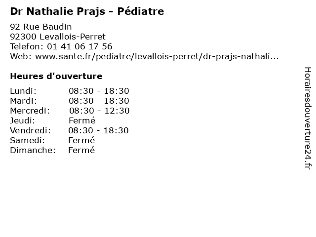 1 Dr Alexis Marion - Pédiatre (Distance: 0,19 km) 88 Rue Rivay, 92300 Levallois-Perret alexis, chirurgie, consultation, docteur, dr, libre, marion, pédiatre, santé, viscérale 2 Dr Andreea Madalina Dumitrescu - Pédiatre (Distance: 0,31 km) 30 Rue Raspail, 92300 Levallois-Perret andreea, dr, dumitrescu, enfant, madalina, pediatre, pédiatre, sante, soins 3 Dr Habib Babchia - Pédiatre (Distance: 0,43 km) 2 bis Rue Camille Pelletan, 92300 Levallois-Perret babchia, dr, enfant, habib, pediatre, pédiatre, sante, soins 4 Dr. Nathalie Houdard - Cardiologie (Distance: 0,52 km) 25 Place Georges Pompidou, 92300 Levallois Perret cardiologie, consultation, docteur, dr., houdard, nathalie, santé 5 Dr. Lucie Nathalie Smadja - Dentiste (Distance: 0,56 km) 79 Rue Voltaire, 92300 Levallois-Perret dentiste, docteur, dr., lucie, medecins, nathalie, sante, smadja 6 AXA Prévoyance & Patrimoine Nathalie Thebault (Distance: 1,14 km) 2 Rue Adolphe Lalyre, 92400 Courbevoie assurance décès, assurance entreprise, assurance epargne, assurance invalidité, assurance patrimoine, assurance profession libérale, assurance protection juridique, assurance prévoyance, assurance santé, assurance vie, axa, nathalie, patrimoine, prévoyance, thebault |