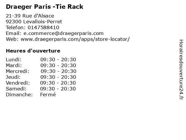 1 Draeger Paris -Tie Rack (Distance: 2,33 km) 84 Avenue Des Champs Elysées, 75008 Paris accessoires, chaussures, draeger, habillement, mode, paris, pret-a-porter, rack, tie, vetements 2 Draeger Paris -Tie Rack (Distance: 4,20 km) 15 Parvis de la Défense, 92800 Puteaux chaussures, draeger, lingerie, mode enfant, mode femmes, mode hemmes, paris, rack, sport, tie 3 Draeger Paris -Tie Rack (Distance: 13,50 km) 2 Avenue de l’Europe, 78140 Vélizy-Villacoublay ceintures, chapeaux, draeger, echarpes, maroquinerie, mode, paris, rack, tie 4 Draeger Paris -Tie Rack (Distance: 14,89 km) 2 Avenue Charles de Gaulle, 78150 Le Chesnay accessoires, draeger, magasin, paris, prêt à porter, rack, tie, vêtements 5 Eleven Paris (Distance: 0,18 km) 31 Rue d Alsace, 92300 Levallois alimentation, beauté & santé, culture & loisirs, eleven, enfants, high-tech, maison & déco, mode, paris, restaurants 6 Yespark, location de parking au mois - Porte de Champerret - Paris (Distance: 0,22 km) 27 Rue Curnonsky, 75017 Levallois-Perret au, champerret, de, location, mois, paris, parking, porte, yespark |