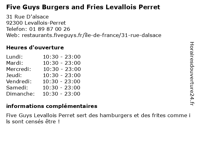 Termes de recherche pour Five Guys Burgers and Fries Levallois Perret:levallois, perret, restaurants, and, five, fast-food, burgers, fries, guys, restaurant américain, restaurant à emporter, restaurant de hot dogs |