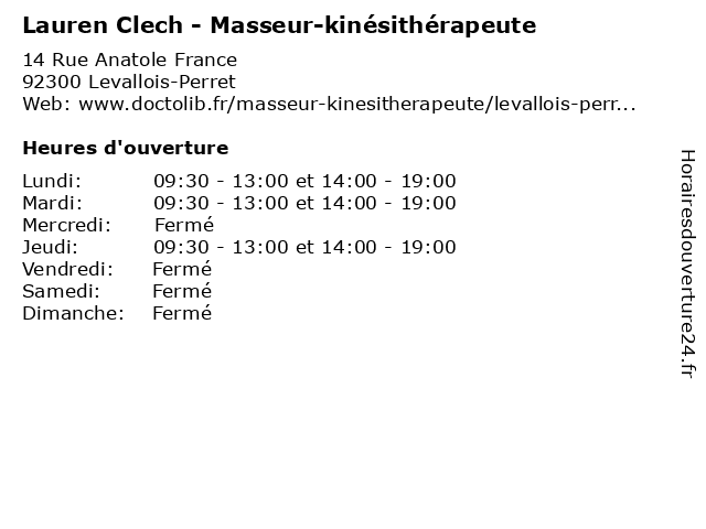 | Mardi | 09:30-13:00 et 14:00-19:00 |