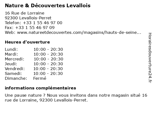 Termes de recherche pour Nature & Découvertes Levallois:levallois, découvertes, nature |