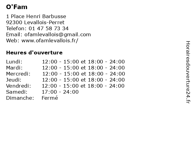 | Samedi | 17:00-24:00 |