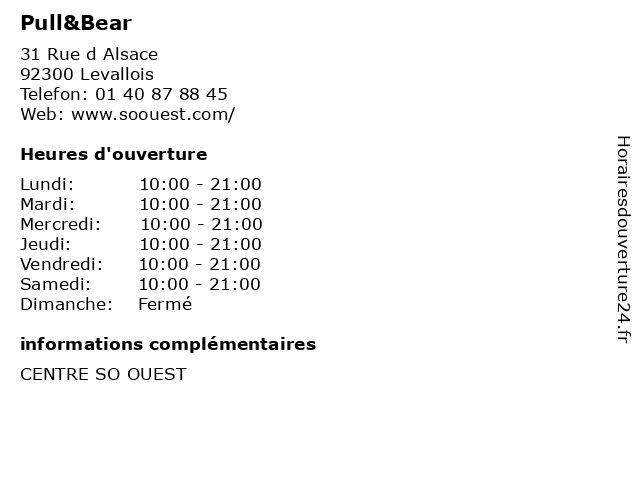 1 Pull&Bear (Distance: 4,36 km) 15 Parvis de la Défense, 92092 Paris La Défense chaussures, lingerie, mode enfant, mode femmes, mode hemmes, pull&bear, sport 2 Pull&Bear (Distance: 4,43 km) 4 Boulevard Gallieni, 92390 Villeneuve-la-Garenne accessoires, bijoux, femme, homme, maroquinerie, mode, prêt-à-porter, pull&bear, vêtements 3 Pull&Bear (Distance: 4,97 km) 101 Porte Berger, 75001 Paris accessoires, boutique, magasin, mode, pret à porter, pull&bear 4 Pull&Bear (Distance: 5,05 km) 65 Rue de Rivoli, 75001 Paris accessoires, boutique, magasin, mode, pret à porter, pull&bear 5 Pull&Bear (Distance: 14,93 km) . Le Haut de Galy, 93600 Aulnay-sous-Bois cafe, chaussures, enfants, lingerie, mode femmes, mode hommes, pull&bear, restaurant, sport 6 |