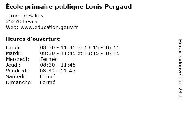 | Mardi | 08:30-11:45 et 13:15-16:15 |