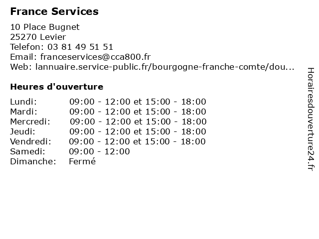 | Mardi | 09:00-12:00 et 15:00-18:00 |