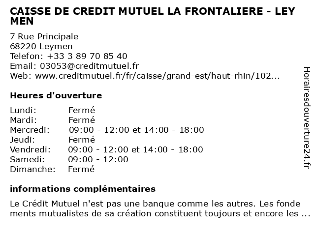 Termes de recherche pour CAISSE DE CREDIT MUTUEL LA FRONTALIERE - LEYMEN:la, de, crédit, mutuel, caisse, leymen, frontaliere |