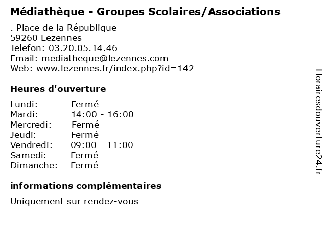 Termes de recherche pour Médiathèque - Groupes Scolaires/Associations:sur, livres, vous, rendez, groupes, scolaires, associations, mediatheque, revues, cd audio, cd.rom, scolaires/associations |