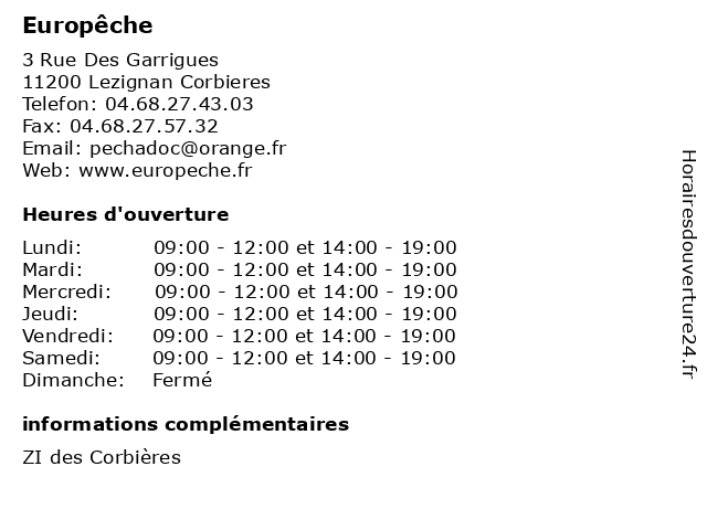 | Samedi | 09:00-12:00 et 14:00-19:00 |