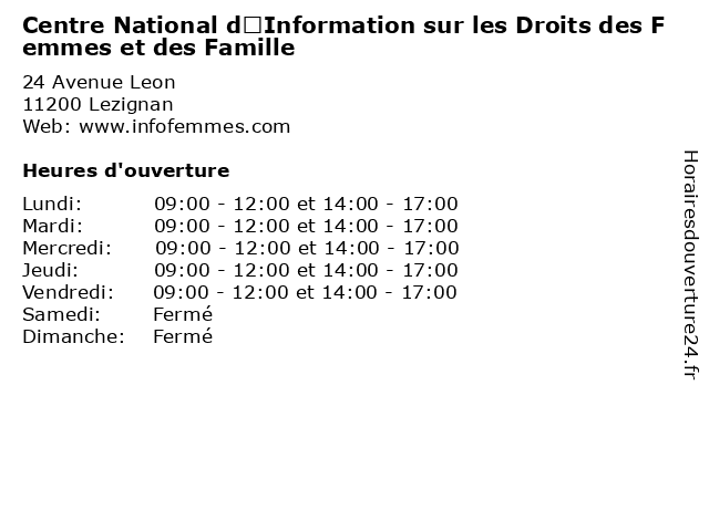 | Lundi | 09:00-12:00 et 14:00-17:00 |
