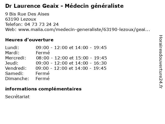 Termes de recherche pour Dr Laurence Geaix - Médecin généraliste:soin, medical, laurence, généraliste, docteur, médecin, dr, geaix |