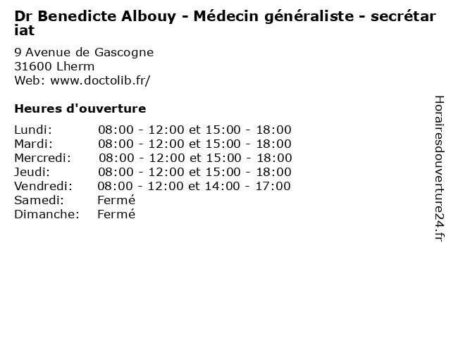 Termes de recherche pour Dr Benedicte Albouy - Médecin généraliste - secrétariat:med, medecine, secretariat, traitement, généraliste, docteur, médecin, consultation, dr, benedicte, albouy |