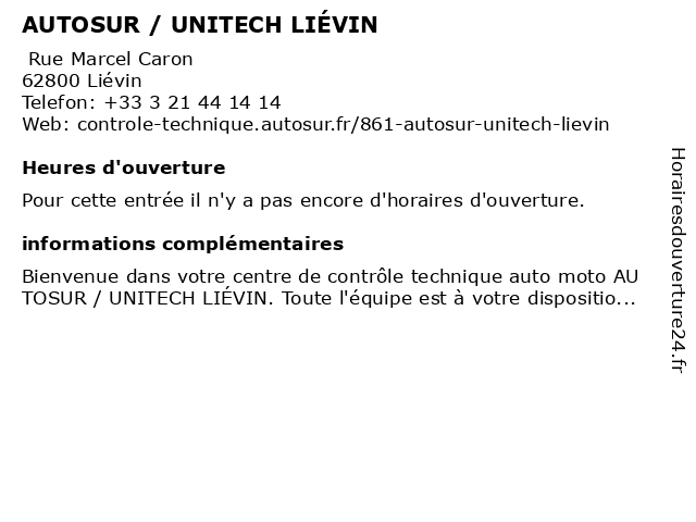 Appeler AUTOSUR / UNITECH LIÉVIN | |