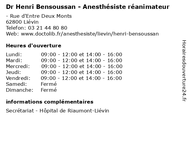 | Lundi | 09:00-12:00 et 14:00-16:00 |