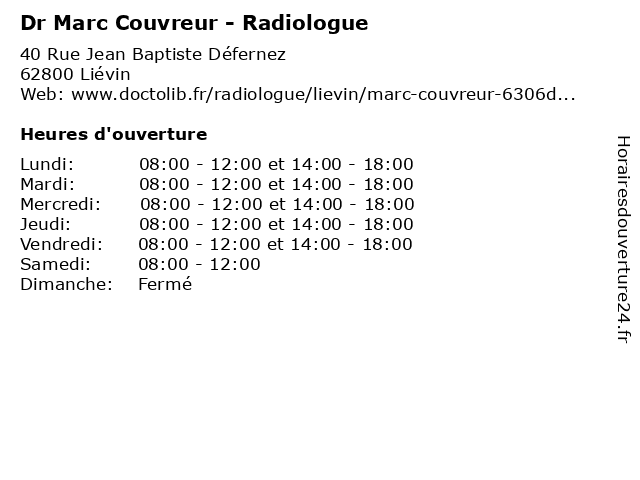 | Mardi | 08:00-12:00 et 14:00-18:00 |